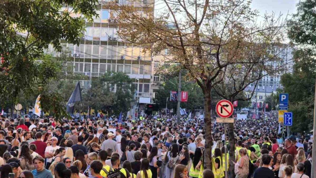 Prvi veliki protest u Novom Sadu održan je 5. novembra prošle godine, četiri dana nakon pada nadstrešnice. Na njemu se okupilo više od 20.000 ljudi koji su prošetali od Željezničke stanice do Gradske kuće, gdje je kamenicama gađana ova javna zgrada.