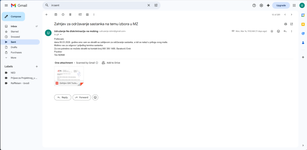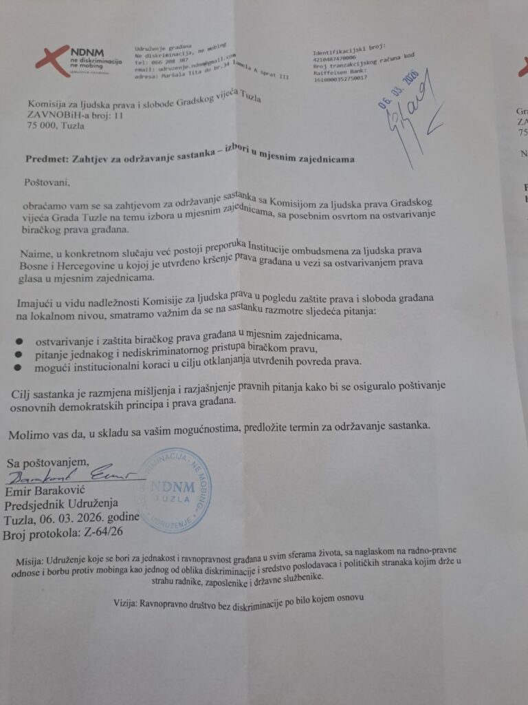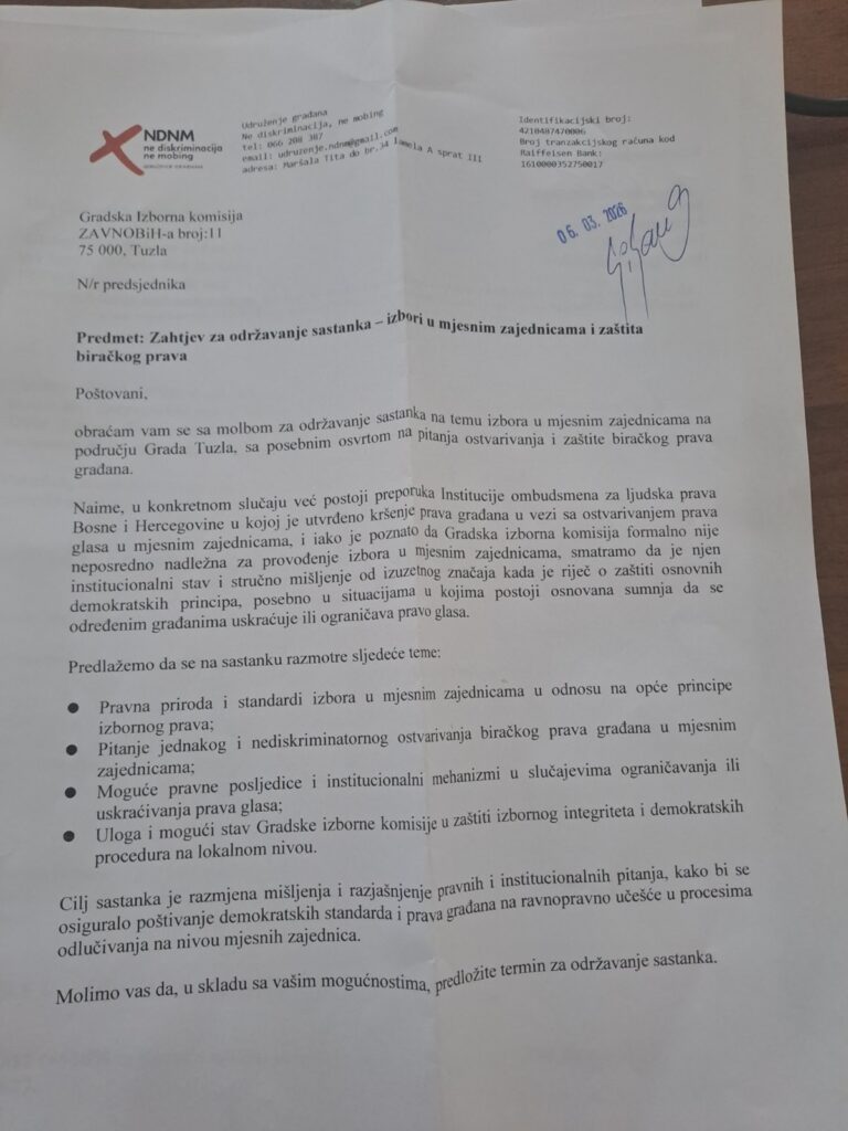 Nakon pisanog i elektronskog upita, dobili smo pozitivan odgovor za sastanak sa dijelom Gradske izborne komisije Tuzla na temu izbora u mjesnim zajednicama.