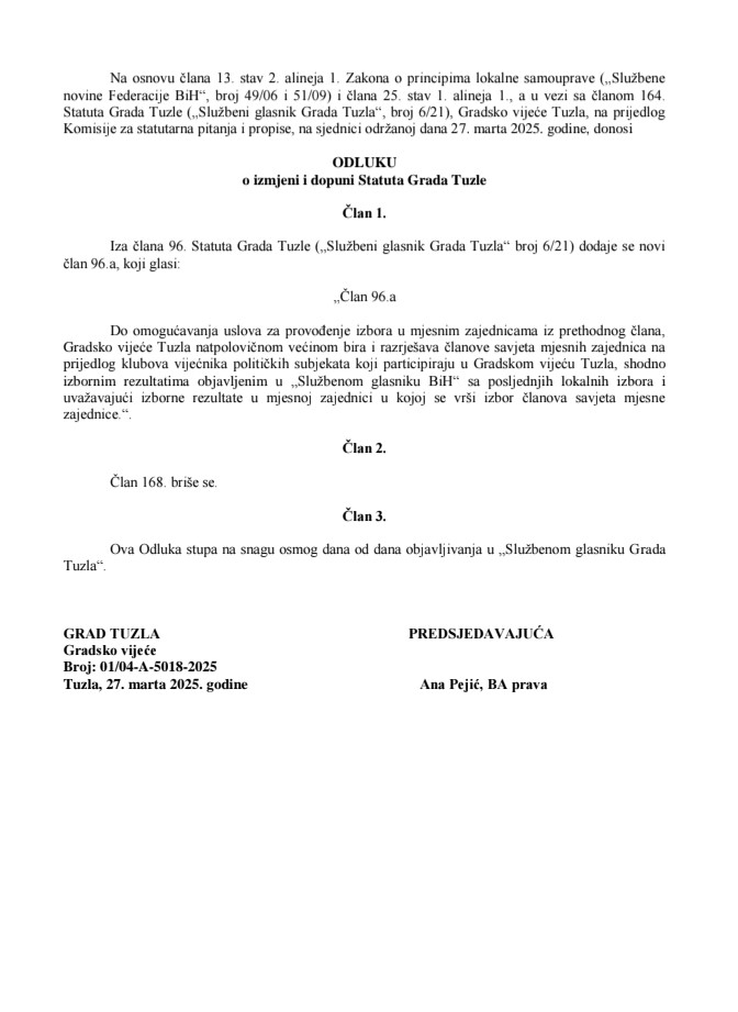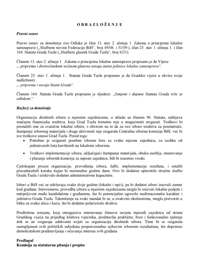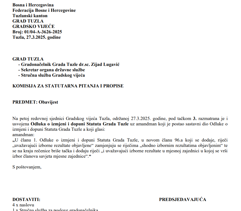 Ova tema se redovno pojavljivala na dnevnim redovima sjednica Gradskog vijeća Tuzla. Međutim, uprkos jasno propisanim obavezama iz Statuta, konkretni koraci su izostali.