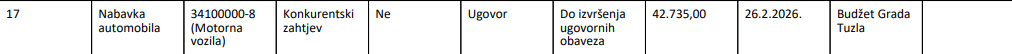 Posebno zanimljiva stavka u planu za 2026. godinu jeste nabavka automobila u vrijednosti od 50.000 KM, koja je planirana putem konkurentskog zahtjeva, a ne otvorenog postupka.
