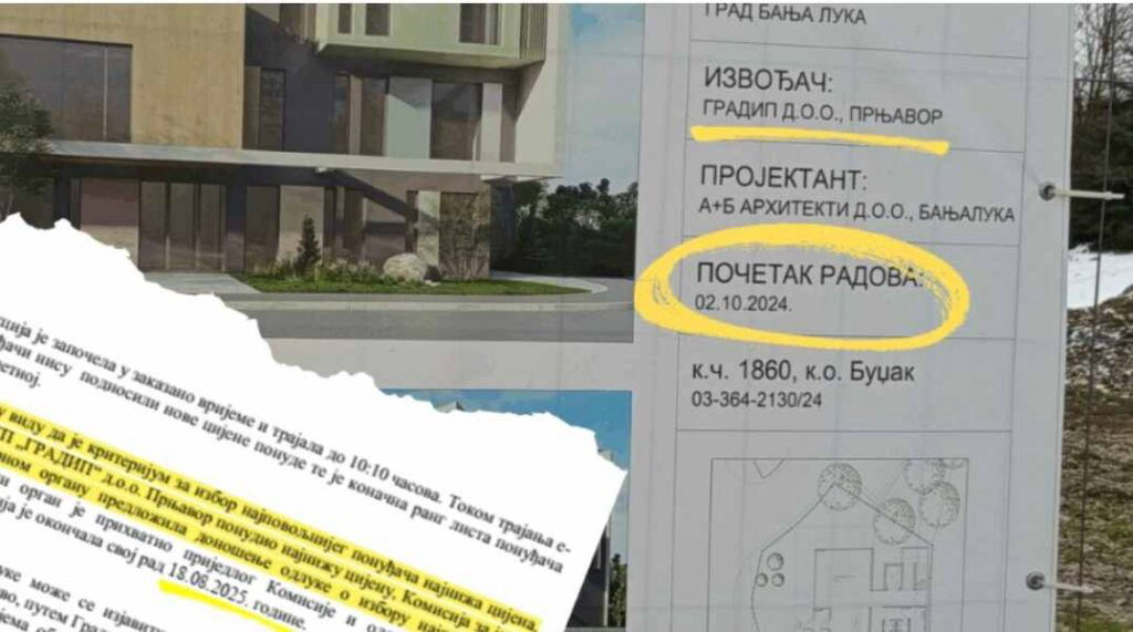 Međutim, skoro godinu dana nakon postavljanja kamena temeljca tender je tek raspisan, a ugovor s firmom „Gradip“ potpisan u septembru 2025. godine“.
