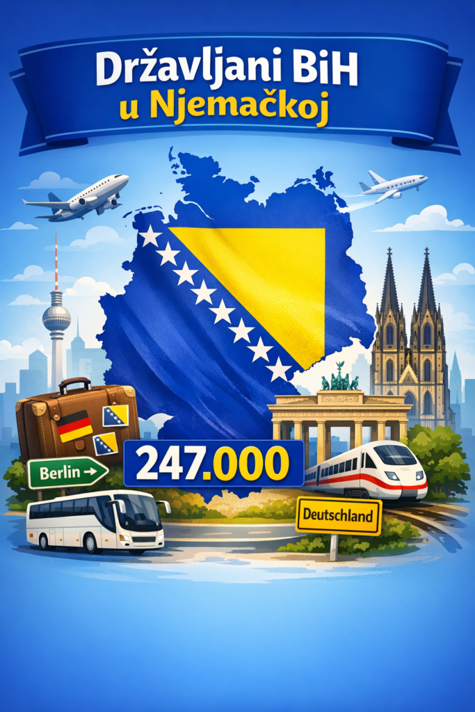 Ove brojke potvrđuju dugoročni trend migracije iz BiH prema Zapadu, a posebno prema Njemačkoj — zemlji koja predstavlja jedno od najvećih odredišta bh. radnika, studenata i porodica u potrazi za perspektivom i ekonomskom sigurnošću